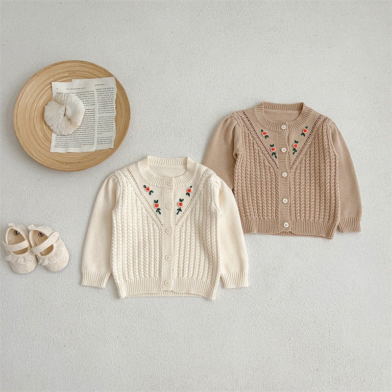 Enhance your wardrobe with this exquisite knitted cardigan. The floral embroidered pattern and solid color create a classic yet distinctive look that will add a touch of elegance to any ensemble. Crafted with intricate stitching and luxurious softness, thi