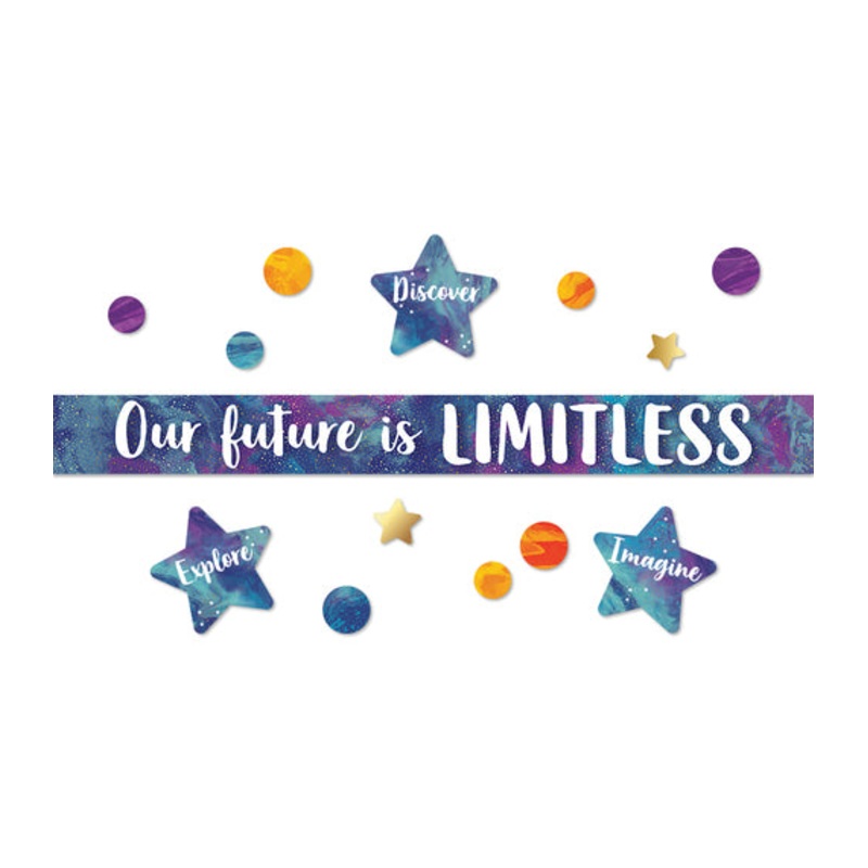 Galaxy Our Future Is Limitless Bb SetDescriptionGive your classroom style that inspires with motivational dcor and bulletin board displays.Encourage your students year-round with an inspirational bulletin board. Featuring majestic swirls of blue, teal, pur