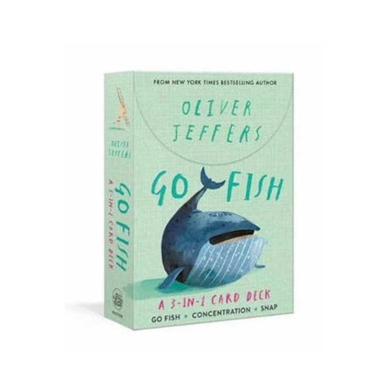 The absurdly adorable art from the New York Times bestselling picture book Stuck turns a game of Go Fish into irresistible fun for kids and parents alike! Do you have any kites? Do you have any Floyds? Any curious whales? This deck of oversized, kid-friendly cards is a surefire way to induce family fun, especially for fans of award-winning childrens book author and illustrator Oliver Jeffers. A hefty cardstock box holds this deck of 52 playing cards (plus two instruction cards)each of which is sized perfectly for little hands at 3-1/2 x 5 apiece. With a flip-top lid and Velcro closure, the package is easily portable and tear-openable for any and every game-playing moment. In addition to playing Go Fish, players will also get the instructions for two bonus games: Concentration (a memory game) and Snap (a kid-friendly card game thats similar to Slapjack).