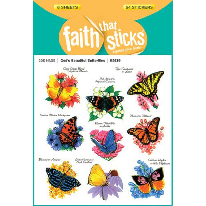 God's Beautiful Butterflies Stickers 92639 help boys and girls understand the diverse nature of Gods creation. These beautifully illustrated, realistic butterfly stickers include the names of both the insect species and the bloom on which they sit. Sticker