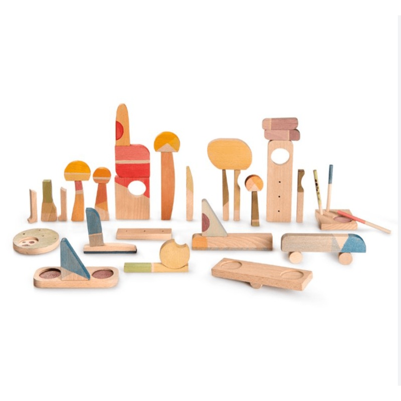 GRAPAT provides material without instructions, open-ended and autonomous play. Their only premise is to let children play, slowly, without time limits. Grapat hand crafts materials that encourage, invite and stimulate the creation of invented little worlds. Grapat is made following traditional processes, in the old way, with thick soft raw materials, natural dyes which let the wood veins be seen and vibrant coloured waxes and oils that slightly shine. The products are painted by hand, homemade, surrounded by nature and many children nearby that inspire the makers daily.