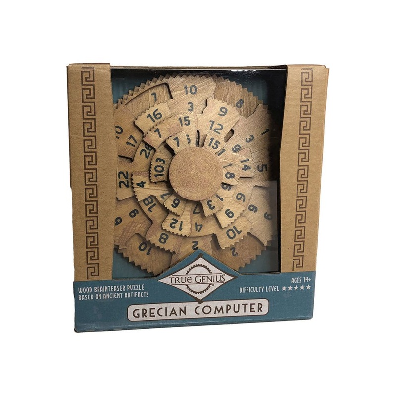 Product Description:Step into the world of ancient innovation with the Project Genius Grecian Computer. This puzzle is inspired by the Antikythera mechanism, often regarded as the worlds first known analogue computer, discovered in a shipwreck off the Greek island of Antikythera. Crafted to mimic this ancient device, the puzzle challenges players to align dials until all 12 columns add up to 42, offering a unique blend of historical intrigue and mental challenge. Designed for players aged 14 and up, this puzzle has a difficulty level of 5, making it a rewarding challenge for enthusiasts of history, astronomy, and puzzles.