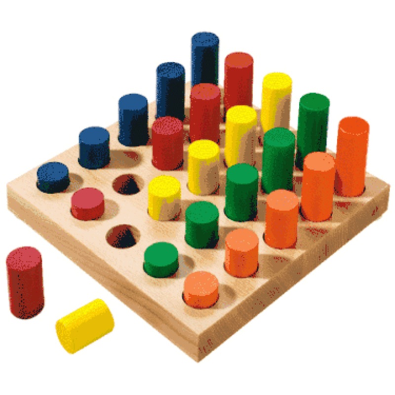 Color and size recognition. Largest peg 4 in. Smallest peg 1 3/4 in.