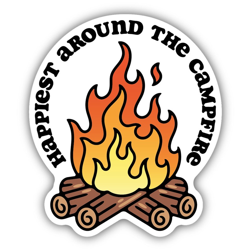 This Happiest Around the Campfire Sticker is great for personalizing your water bottle, notebook, laptop, and more. It's perfect for those who love camping and spending time outdoors!Matte finish laminated vinylWaterproofFadeproof (all weather)Removable wi