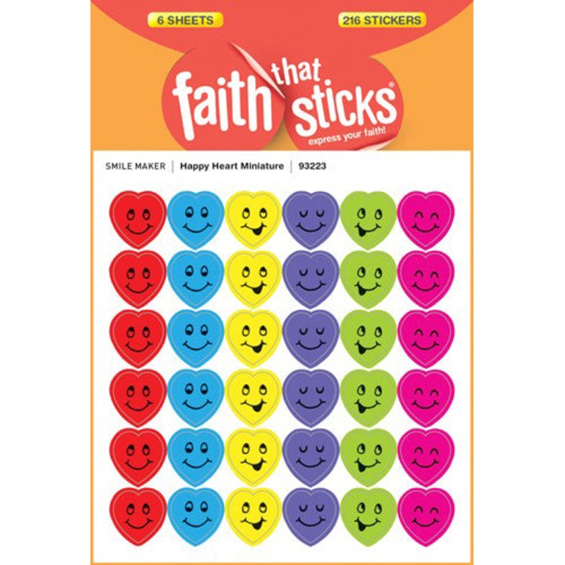 The Happy Heart Mini Stickers 93223 are guaranteed to get a smile from any boy or girl. 6 vibrant colors make them great for attendance charts and reward stickers.Slightly over " x " each6 sheets36 stickers per sheet216 stickers per pack