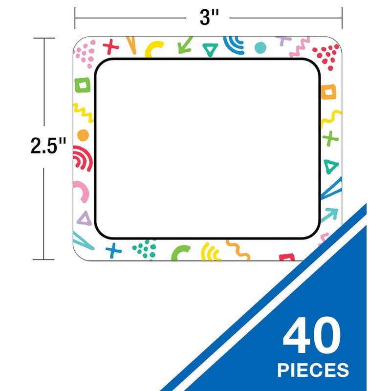 Carson Dellosa’s Happy Place Name Tags provide an easy way to label and organize for a successful school year. Each student name tag in this 40-piece pack measures 3 inches x 2 1/2 inches. Each self-adhesive tag features a colorful, retro border design with ample writing space for students, teachers, or parents to write their names and personalize each name tag with ease.