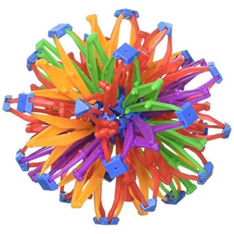 A really fun isokinetic structure that resembles a geodesic dome, but is capable of folding down to a fraction of its normal size by the scissor-like action of its joints. This form created by Chuck Hoberman has been wowing kids and adults alike for decades. Fun fact: Chuck Hoberman is the son of famous children’s book author Mary Ann Hoberman. WARNING: CHOKING HAZARD – Small Parts. Not for children under 3yrs.