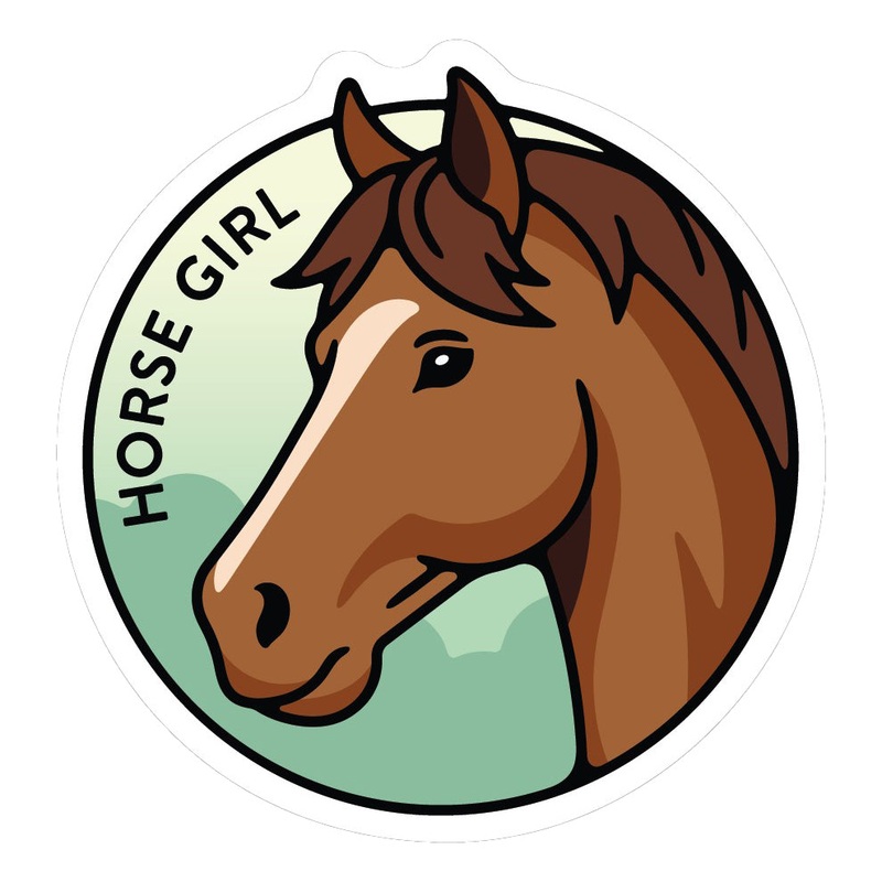 Customize your water bottle, notebook, laptop, and more with this Horse Girl Sticker 2972-LSTK.Matte finish laminated vinylWaterproofFadeproof (all weather)Removable without residueApproximate Size: 3 inchesDishwasher safe; handwash encouragedMade in the U