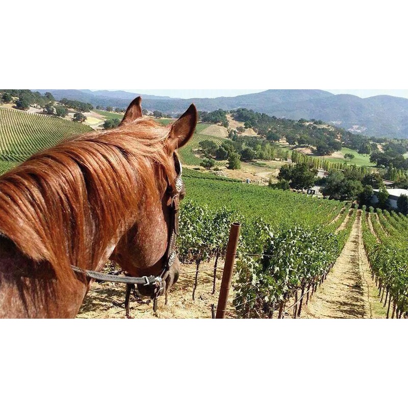 Picture this: the bride and groom, clad in matching cowboy boots, trotting through wine country, laughing as they try not to fall off.