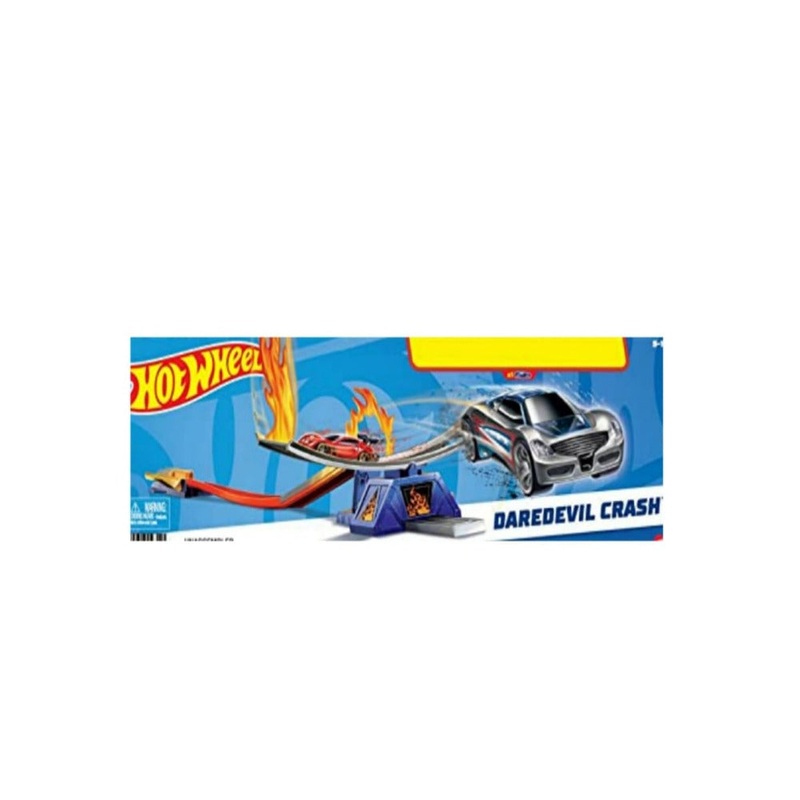 Age : 5 - 10 Year Hot Wheels Daredevil Crash track set is the ultimate track challenge featuring all-out speed with daredevil stunts on the stunt pipe Launch your car to knock the stunt car off the ramp. Time it right and fly through the ring of fire and s