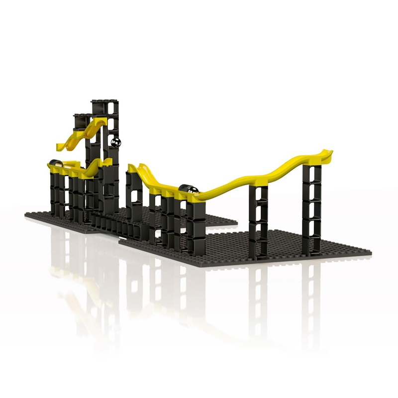 The Hubelino Pi marble run system is designed for older children. Pi combines daring physics tricks with creative construction fun. The fascination of constructing tricky marble run racetracks is only topped by the high speed and action-packed tricks and s