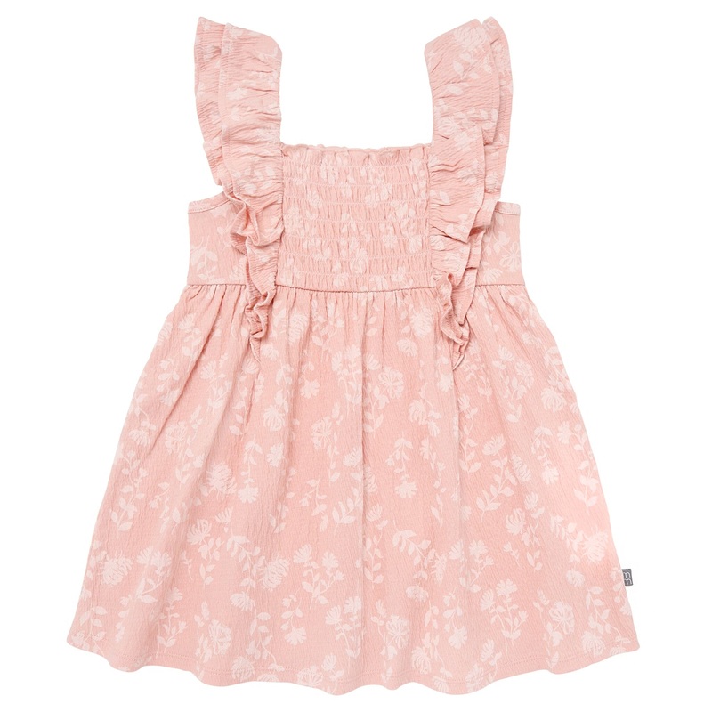 Make every day a stylish adventure with this fun and fashionable baby or toddler girl dress! The dress is crafted from soft fabric with a natural stretch for playtime flexibility and a smocked bodice that gives it a flexible feel. With ruffled shoulders and a delightful flower print, this dress is perfect for everything from photoshoots to everyday playdates. Your little one will be ready to charm in this sweet, trendy look! Our essentials have been independently certified with STANDARD 100 by OEKO-TEX so that you dont have to worry about harmful substances in your little one’s wardrobe. Pack includes one dress.