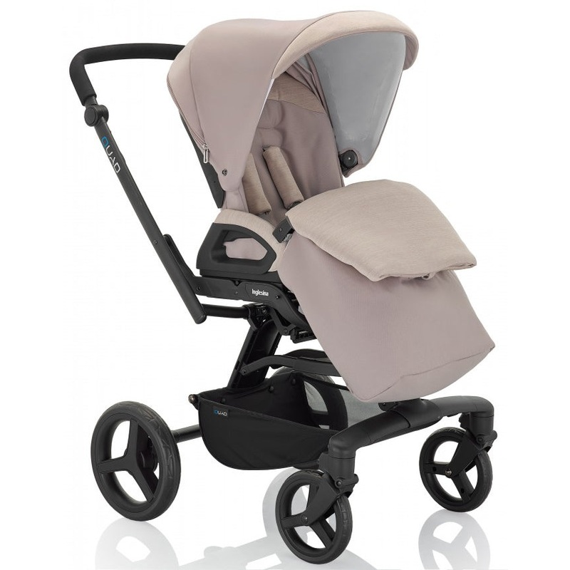 Quad is the new Inglesina stroller combining an extremely modern and technical look with the sturdiness and the ability to travel even on the roughest terrain. The Quad?s innovative frame is sturdy and light, and it features large ball bearing wheels that provide a smooth ride. Its linings emphasize the particular ?all-terrain? appearance, with fabrics inspired from nature and ranging from the texture of jute, the lightness of linen to the softness of the melange jersey.