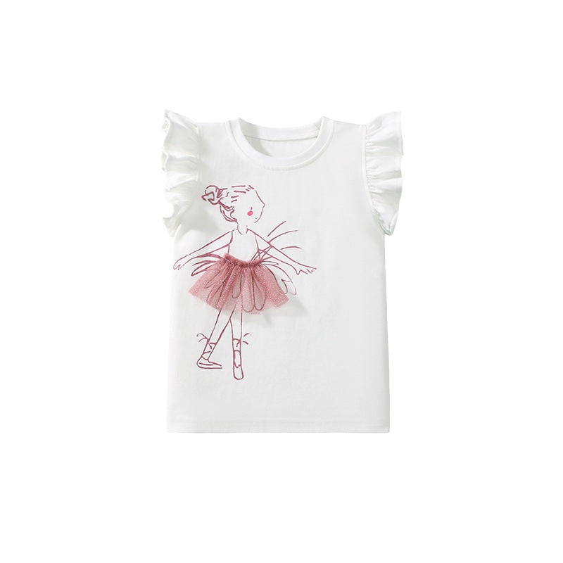 Kids Dancing Girls Pattern Fly Sleeves T-shirt in European and American Style for Summer
