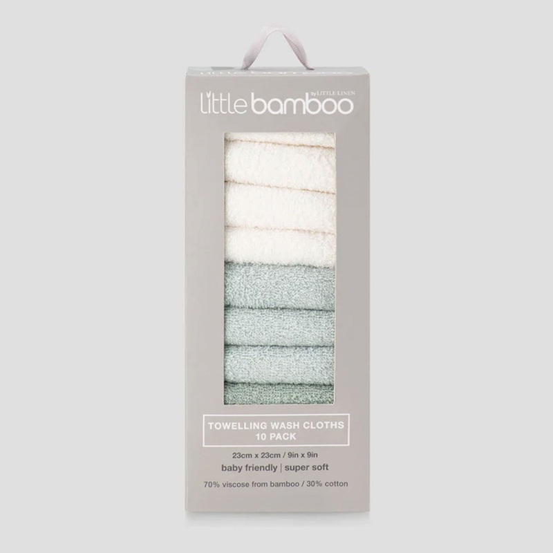 Made from bamboo-derived viscose and cotton, these washers in Bayleaf feel beautifully soft and gentle against baby's skin.This bamboo blend is highly absorbent while maintaining a smooth, comfortable touch. Durable construction ensures they stand up to re