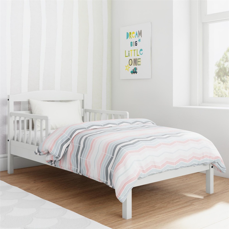 Baby Relax Jackson Kids Wood Toddler Bed with Safety Guardrails, White Is it already time for the big-kid bed? The sturdy construction of the Baby Relax Jackson Toddler Bed will transform your nursery into a new, safe and fun bedroom for your growing child