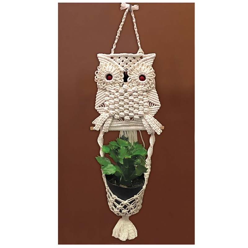 Learn how to do macrame with this Macrame Wall Hanging Kit Owl Planter. In this kit you will have everything you need to make a fun and unique plant hanger to decorate your space.