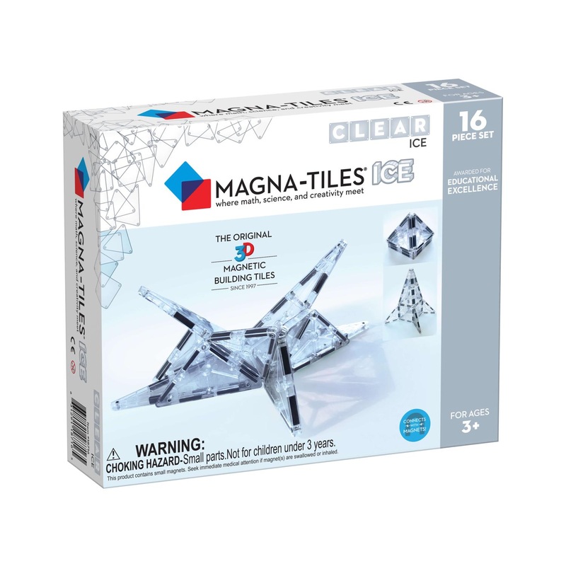 Whether its at home or in the classroom, a Magna-Tiles ICE 16-Piece Set is the perfect addition to any Magna-Tiles collection. These beautiful clear tiles look just like ice, glass, or crystals ideal for unleashing your childs wildest dreams! This set puts a new twist on the popular line of magnetic building toys with clear, crystalline tiles. Kids can build igloos, glass houses, or diamond palaces and then marvel at the way the light shines through! For ahes 3 and up. WARNING: CHOKING HAZARD – Small Parts. Not for children under 3yrs.