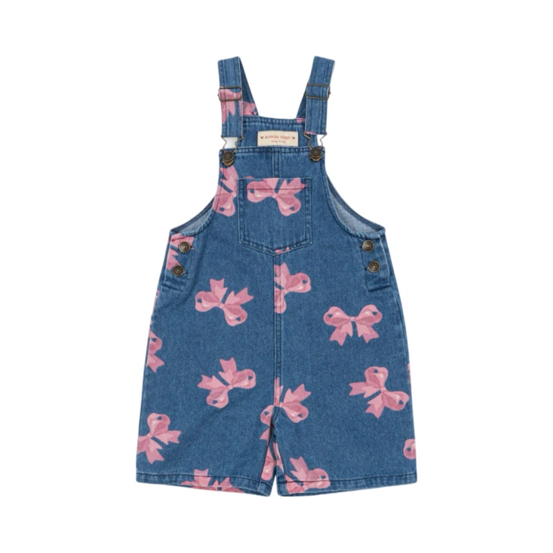 Soft denim overalls with signature logo buttons.Made in organic cotton.