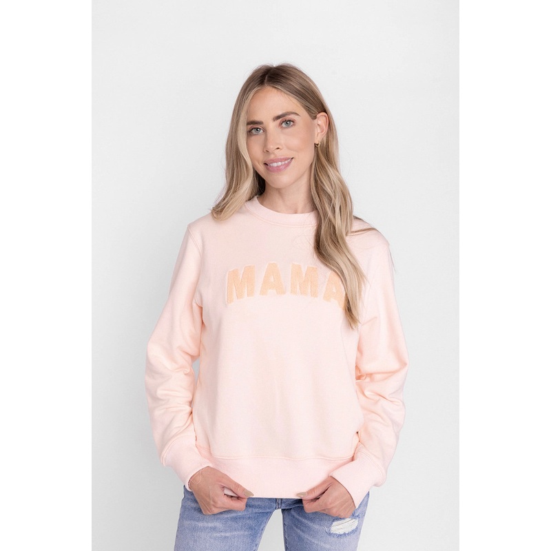 Blush pink MAMA sweatshirt. The perfect gift for a new mom, baby shower, mother's day or just simply for the modern day mom's wardrobe. Pair it back to the MINI sweatshirt for the perfect modern day mommy and me outfit.Product DetailsCrewneckLong sleeves10