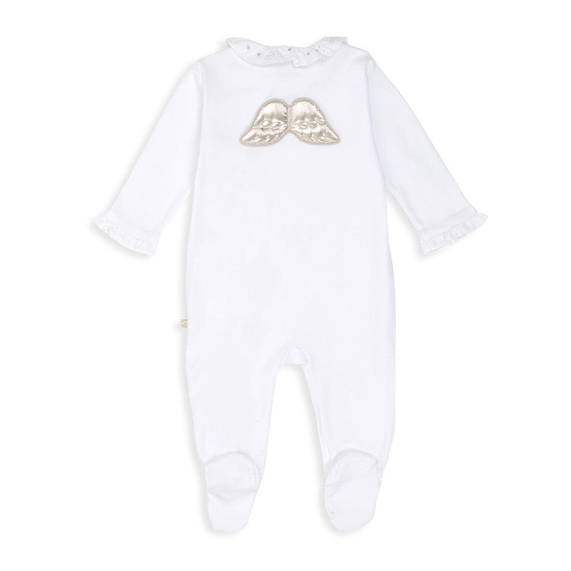 Marie-Chantal Angel Wing Baby Sleepsuit, White Prima Cotton Designer Baby Sleepsuit, Luxury Baby Coming Home Outfit, New Baby Gift