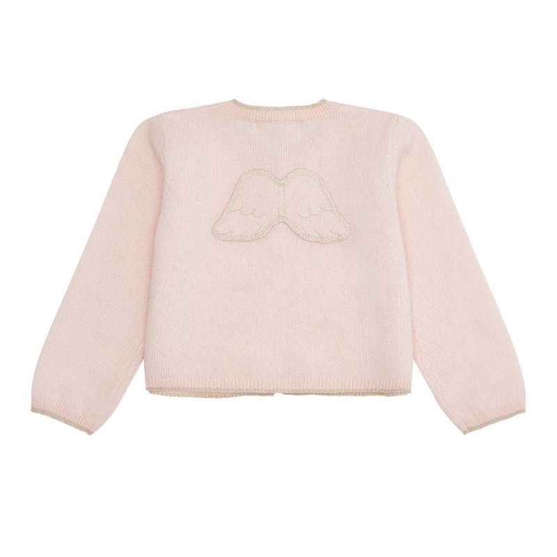 Pure luxury baby girl gift. Cloak your Angel in the softest cashmere. Featuring Marie-Chantal signature Angel Wing design in gold intarsia on the back, this classic cardigan becomes a true, if discreet statement piece.100% CashmereCare Instructions:- Delic