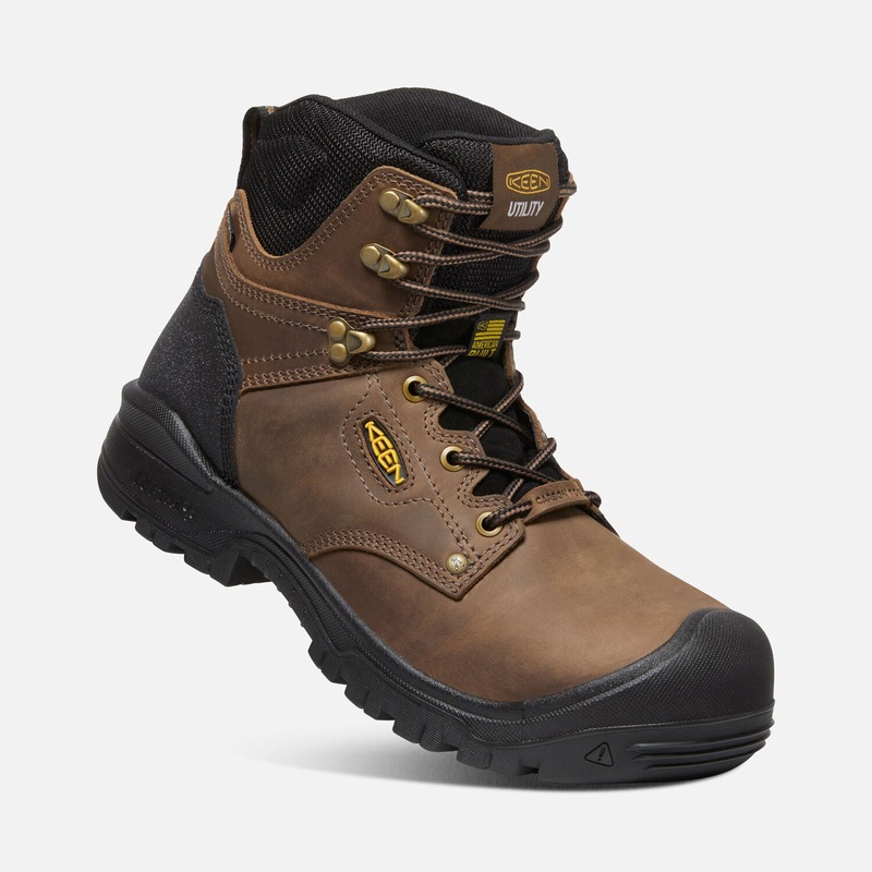 Designed for either indoor or outdoor jobsites, even those with rocks and mud, the Independence 6-inch Waterproof Safety Toe Work Boots for men from Keen will keep your feet protected and comfortable for the whole shift. Among the features are full grain leather uppers, KEEN.DRY waterproof breathable membrane to keep your feet dry, carbon-fiber safety toes, and the lightweight but durable KEEN.ToughSole outsole.