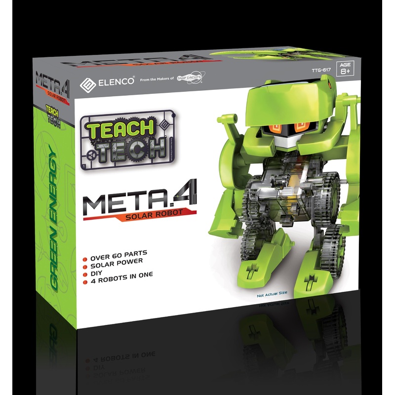 Meta.4 introduces Robotics to younger children with larger, easier-to-handle parts. Build and rebuild 4 different models, one at a time. Your Meta.4 is powered by clean, green, sunlight so no batteries are ever needed.