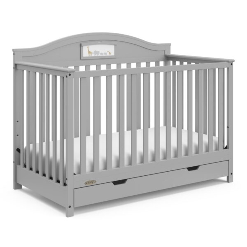 Graco Story 5-in-1 Convertible Baby Crib with Drawer, Pebble Gray Tell your own story and personalize your child's crib with the all-new Graco Story 5-in-1 Convertible Crib. With its reversible headboard and customizable artwork panel, the Story offers the