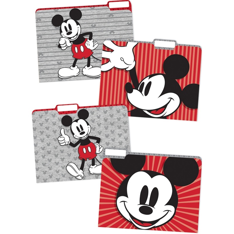 Mickey Mouse File FoldersFour pack of Eureka File Folders in complementing designs offer unique and creative solutions for classroom organization.4 file folders per pack. Individual folder measures 9" x 11 1/2"FEATURES FOUR COMPLEMENTING PATTERNSCOORDINATE