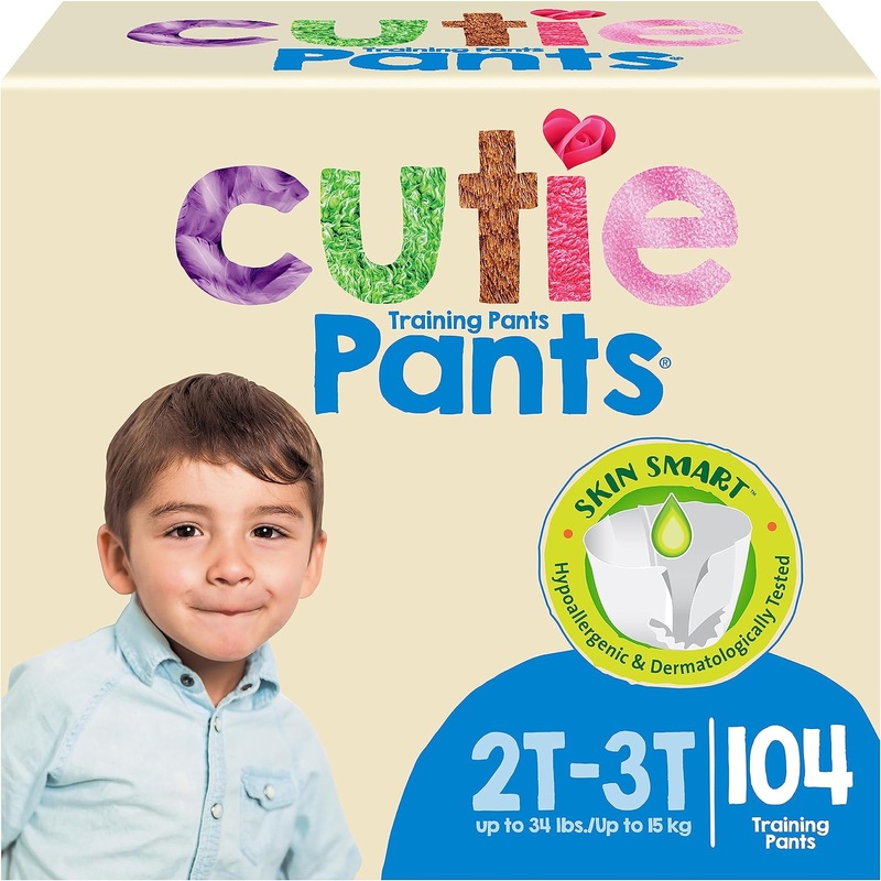 Cutie Boys 2T/3T Refastenable Potty Training Pants, Hypoallergenic with Skin Smart, 104 Count Cotton POTTY TRAINING FOR ACTIVE TODDLERS: These training pants feature cute characters that fade when wet. Stretchable, refastenable sides move with your toddler