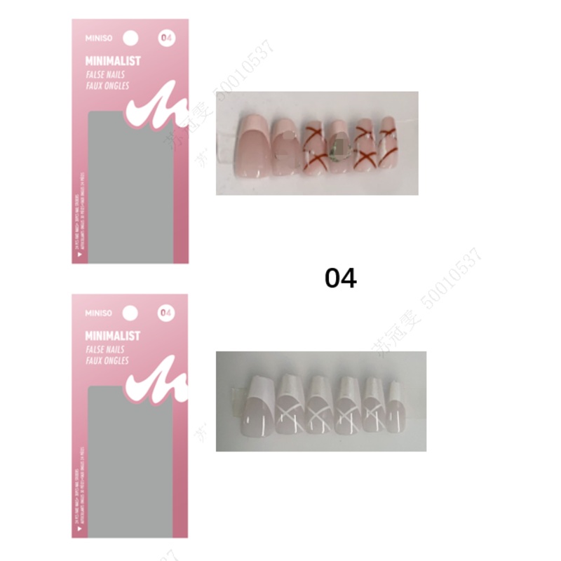 Minimalist False Nails (04)Type: False NailsDesign: Sleek and elegant minimalist designLength: Medium length for a versatile lookMaterial: High-quality, lightweight material for comfortable wearApplication: Easy to apply with included adhesive tabsRemoval:
