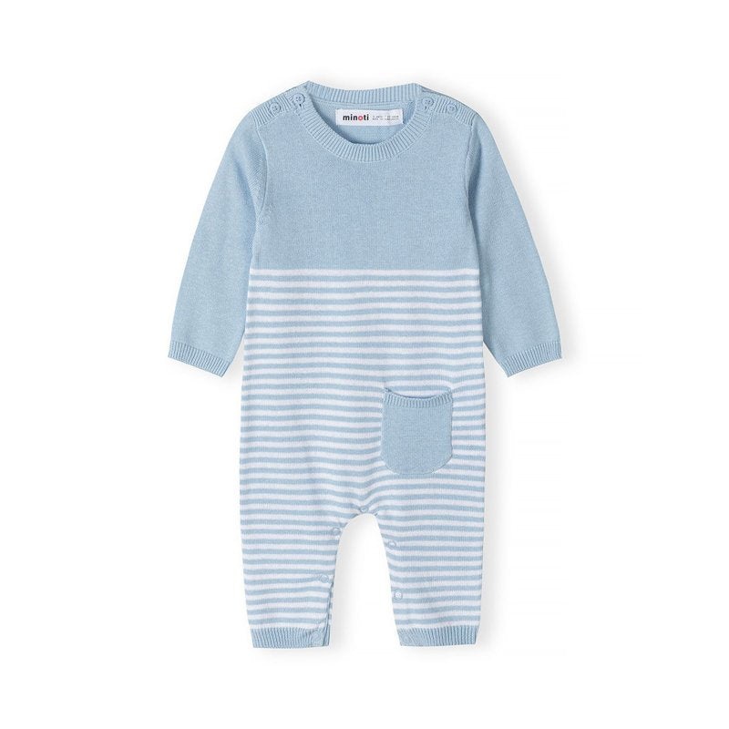 This super soft baby romper in blue and white stripes is just right to keep a baby boy or girl snug this winter