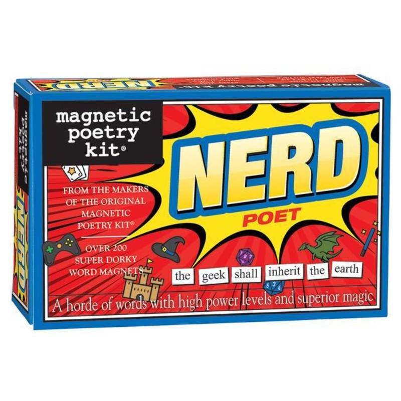 Over 200 word magnets with high power levels and superior magic. Includes words like dragon, dungeon, comic, convention, horde and nerd. For Ages 8 and up. WARNING: CHOKING HAZARD - Small Parts. Not for children under 3yrs.