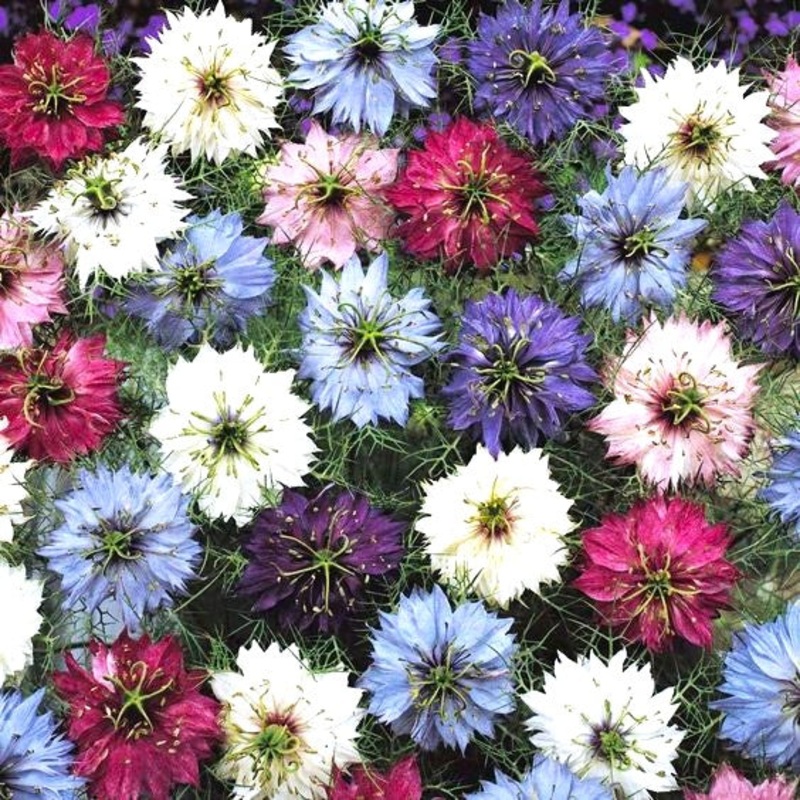 Gorgeous jewel tones of 'Love in a Mist'- blues, purples, whites and pinks! Looks stunning in borders, amazing for wildlife and fabulous in bouquets too!