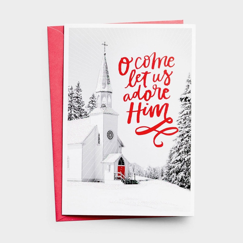 Bless family and friends with these beautiful Christmas cards! The Dayspring O Come Let Us Adore Boxed Christmas Cards are designed with a classic black and white color scheme that has touch of red.Cover reads: "O come let us adore Him". Inside reads: "Thi