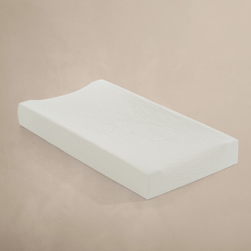 Keep your diaper changing station sanitary and chic.Our luxurious muslin, 'Eggshell' creme changing pad cover, is crafted from organically grown premium 4-way cotton muslin, woven with the utmost care using the finest yarn. This results in a wonderfully te