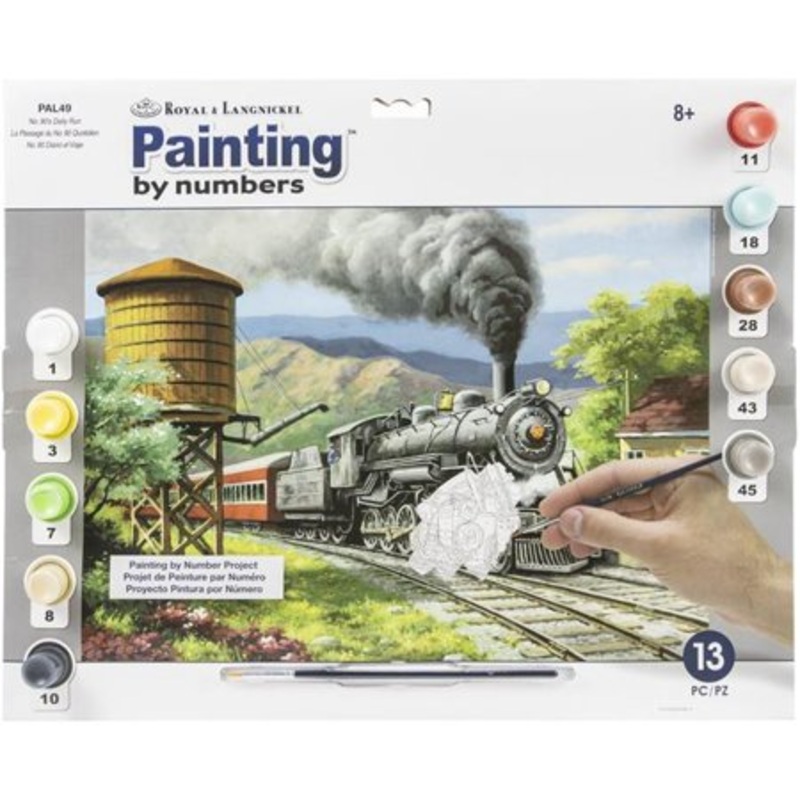 Paint like a pro with this Paint-by-Numbers Daily Run PAL49 set. It includes all of the supplies you need to complete the project. This set is easy to use and perfect for beginners.Dimensions: 15.375" x 11.25"Ages 8 & upIncludes:10 acrylic paint pots1 prep