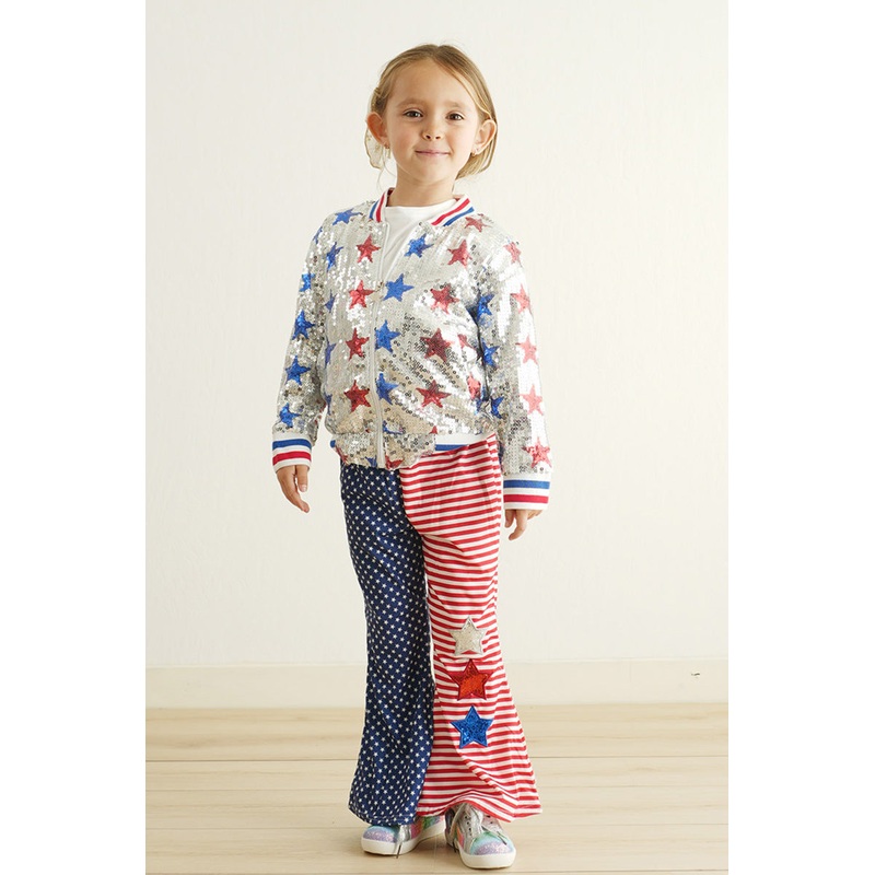 Show off your patriotism with a playful twist in our Patriotic Star Girl Pants. These trendy pants feature star print details that add a stylish touch to your outfit. Perfect for any casual day, these pants are a fun and quirky addition to your wardrobe. (USA, USA, USA!)