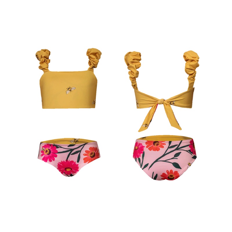 Puffy non-adjustable straps reversible bikini swimsuit.