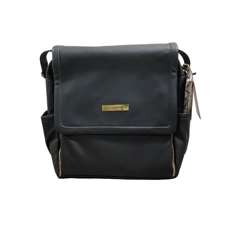 Stylish diaper bag that can be worn messenger style or like a backpack. Features a built in changing station with removable changing pad, wipe-clean exterior, and ample pockets with plenty of room for all your essentials.