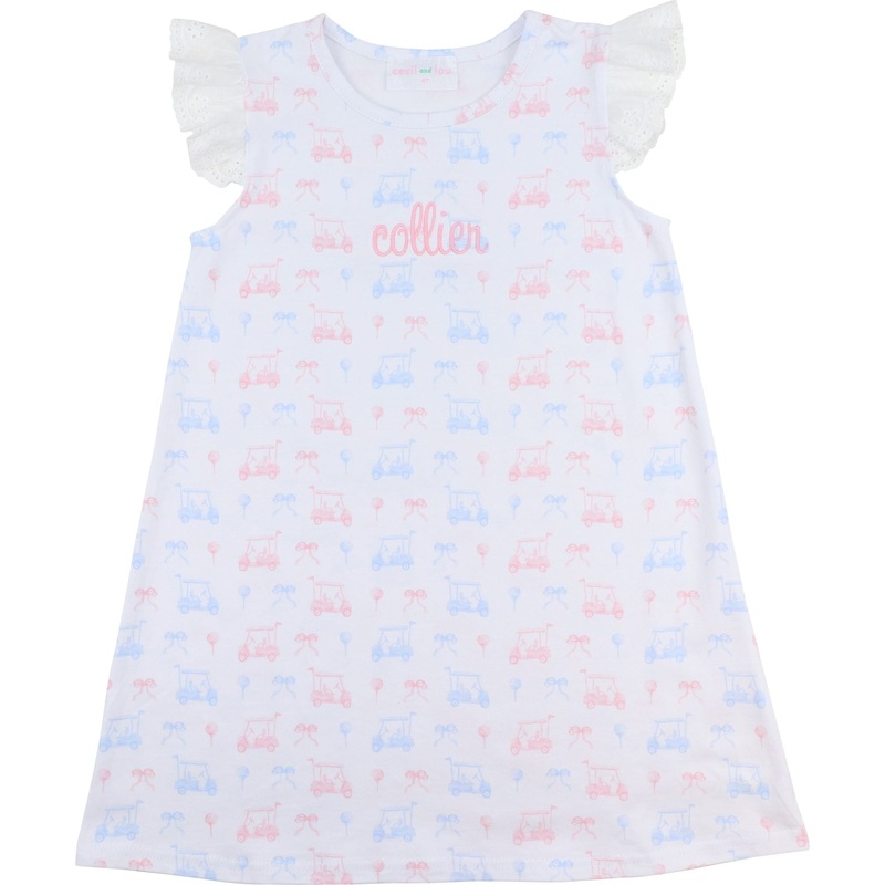 The Pink and Blue Golf Knit Dress is a playful nod to the greens, featuring a soft pastel golf cart print on breathable knit fabric. Designed with charming flutter sleeves and a relaxed A-line fit, this girls golf dress is perfect for country club outings and summer vacations.