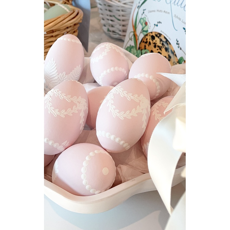 ceramic egg measures 3 x 2. sealed in a matte enamel for durability. Store Exclusive for Loozieloo. Handpainted and Initialed by Ashley Gale Designs