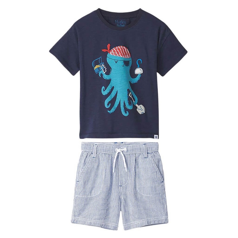 The Pirate Octopus Set is a treasure trove of fun!Crafted from soft cotton, this tee features a cheeky octopus pirate graphic thats sure to delight little adventurers. The slouchy fit offers comfort for both playtime and downtime.Perfect for poolside fun o