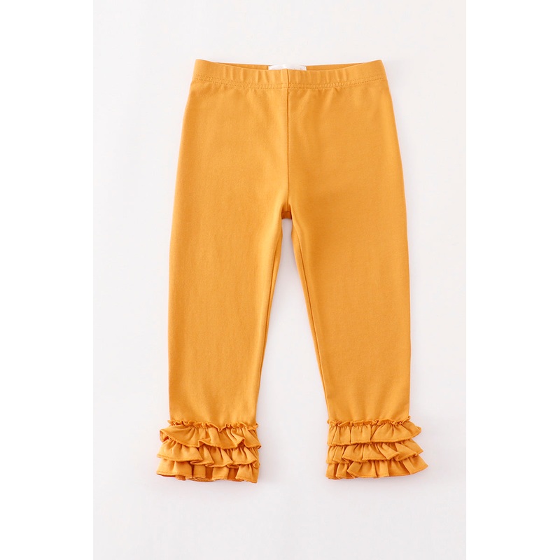 Spice up your little one’s wardrobe with our Yellow Ruffle Girl Pants! These pants feature playful ruffles and a vibrant yellow color that will make any outfit pop. Perfect for twirling and having fun, these pants will keep your little girl stylish and comfortable. (Pair with our matching yellow ruffle top for a complete look!)