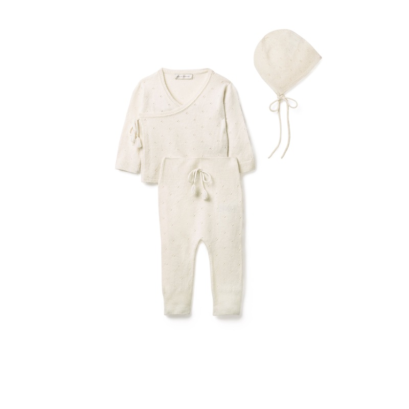 Be the first to review “Pointelle Wrap Top, Leggings & Bonnet Set in Snow White”