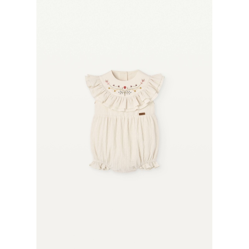 B39867955Popelin Embroidered Off White Yoke & Frills Romper