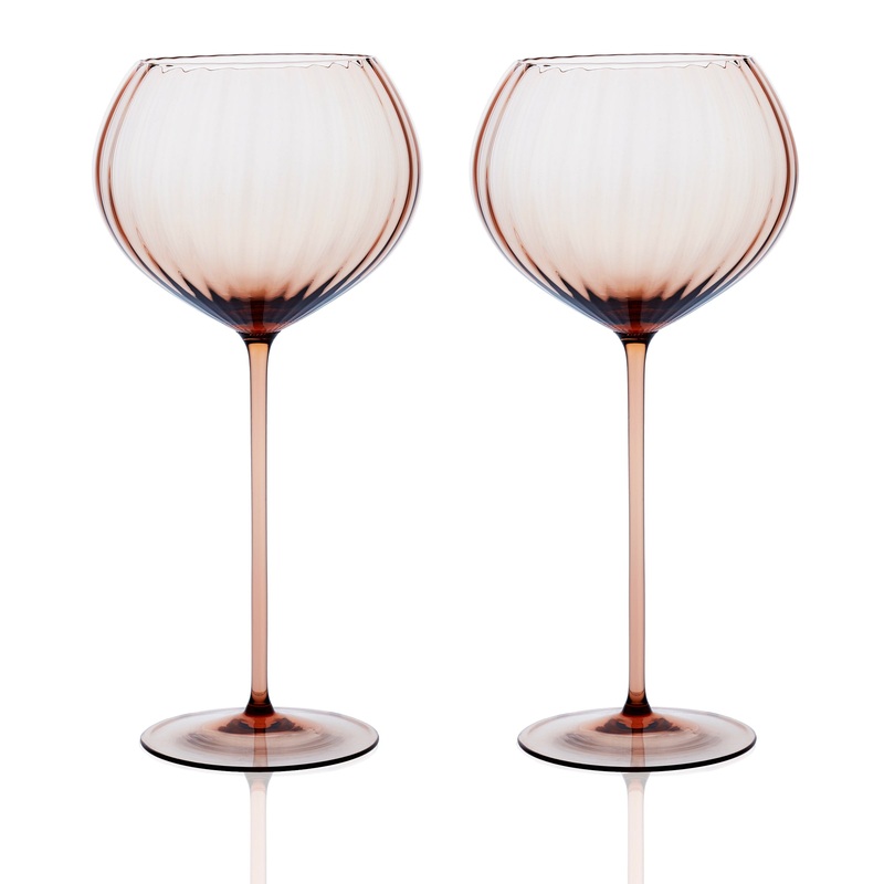 Caskata makes dinnerware for those who love to entertain. That joie de vivre and celebratory atmosphere makes its way into each piece of the brands blend of classic and contemporary designs, recognizable by their creative patterns, enduring quality, and light touch. Mouth-blown in a centuries-old glassworks in the Czech Republic, the bowls of the Quinn Amber Red Wine Glasses, Set of 2 artfully capture the light, adding to your experience. They rest comfortably in the curve of your hand so that you can savor your favorite vintage, or heck, even water.