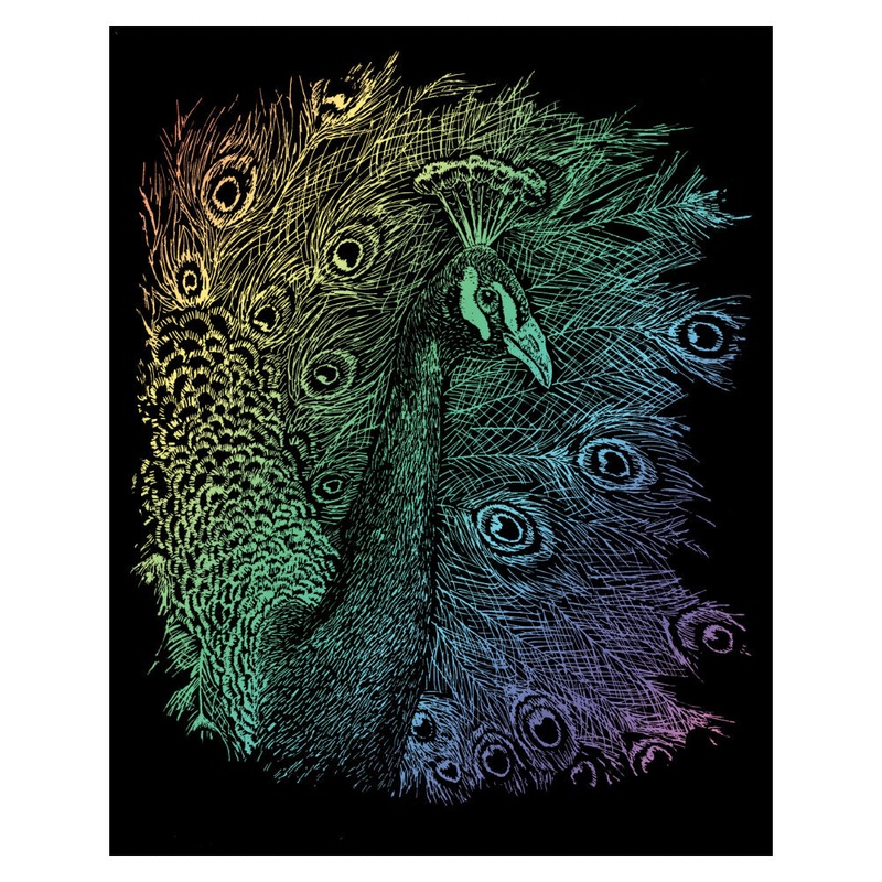 The Rainbow Engraving Peacock RAIN-14 is a great art project for someone who loves creating without making a mess! Everything you need included. 8.37 X 11.62 InchesRainbow ArtSet Includes:1 Preprinted Art Board1 Practice Piece1 Stylus