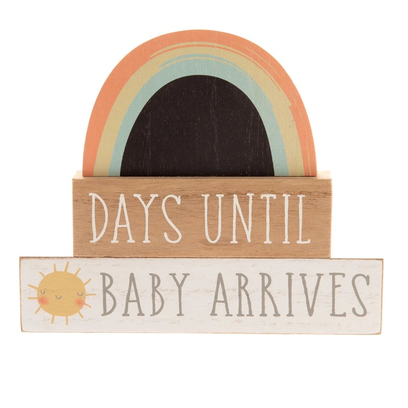 This colourful pregnancy plaque is a fun way to count down the days to the new arrival, this MDF countdown plaque would look beautiful in any home. The rustic rainbow and sun design is a cheerful and light-heartedway to prepare for a new bundle of joy.